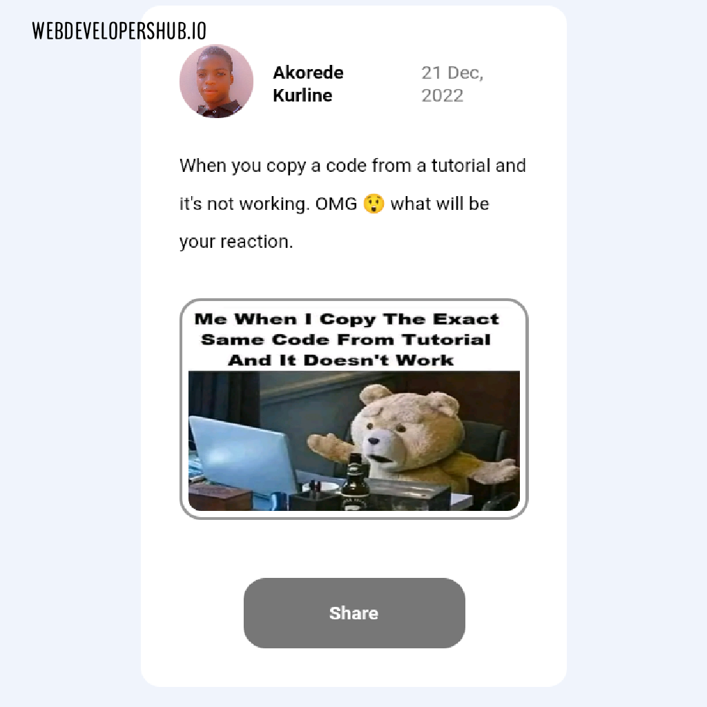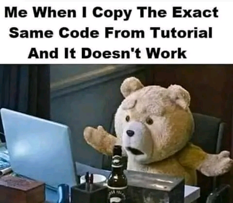 When you copy a code from a tutorial and it's not working. OMG 😲 what will be your reaction.